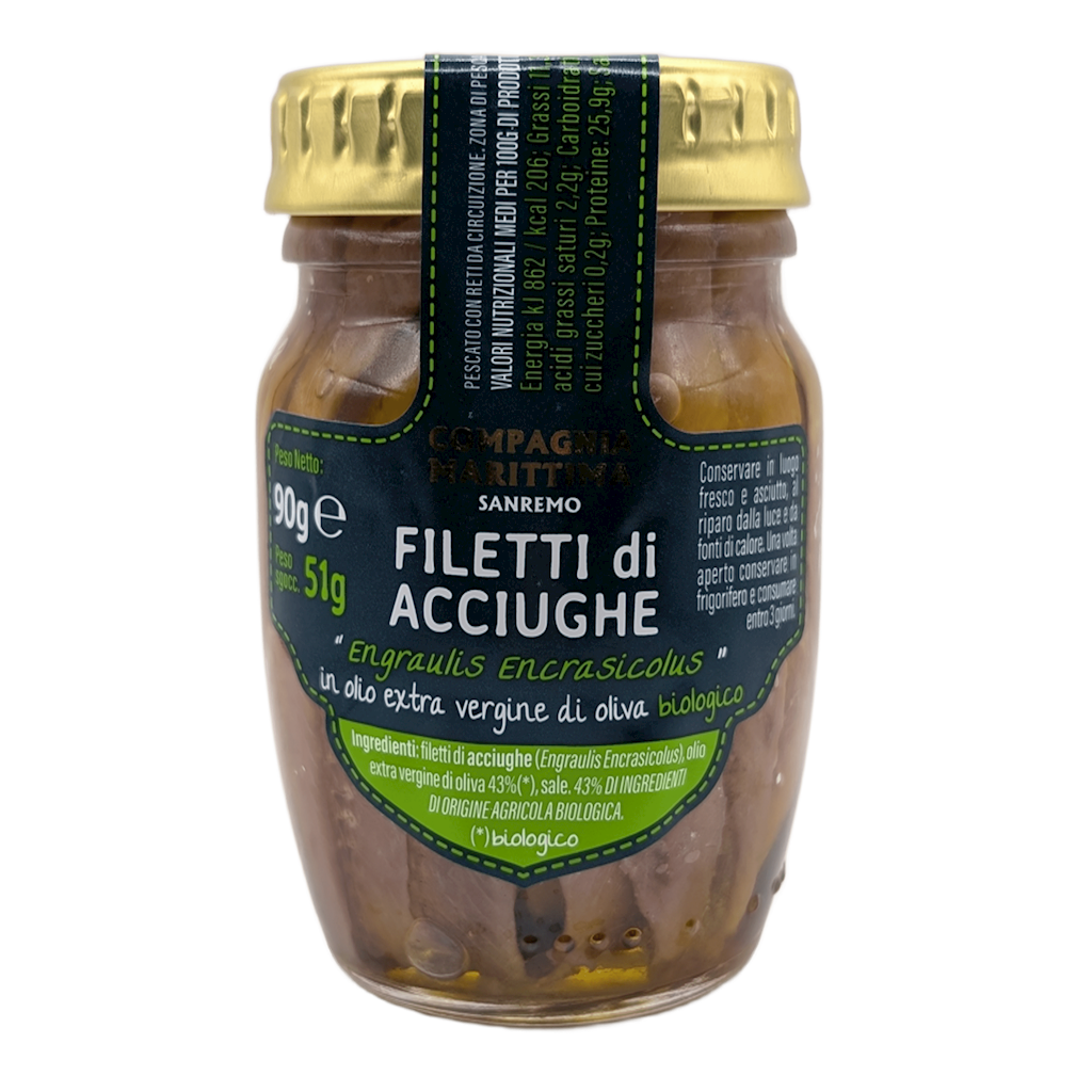Wyselekcjonowane i aromatyczne anchois, powoli dojrzewające i konserwowane w ekologicznej oliwie z oliwek extra virgin, aby podkreślić ich autentyczny smak. Idealne na aperitify, przystawki lub do dań kuchni śródziemnomorskiej – mały, wielki skarb morza, bogaty w charakter i naturalność.