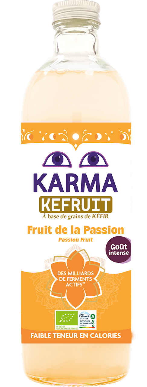 woda, jasny cukier trzcinowy*, figi*, sok z marakui* 2%, kultury scoby*, sok z cytryny*, ekstrakt z cytryny*, ekstrakt z wanilii*, żywe kultury bakterii, dwutlenek węgla powstający w wyniku fermentacji (*certyfikowany składnik ekologiczny). 32 % składników pochodzących z upraw Fair Trade for Life.