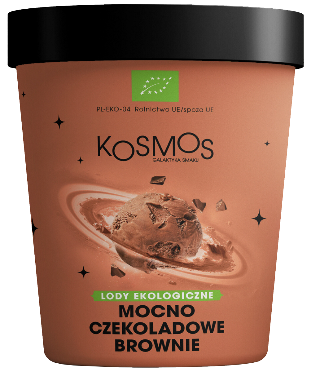 Ekologiczne lody czekoladowe z ciasteczkami marki KOSMOS wykonane metodą rzemieślniczą z najwyższej jakości składników.