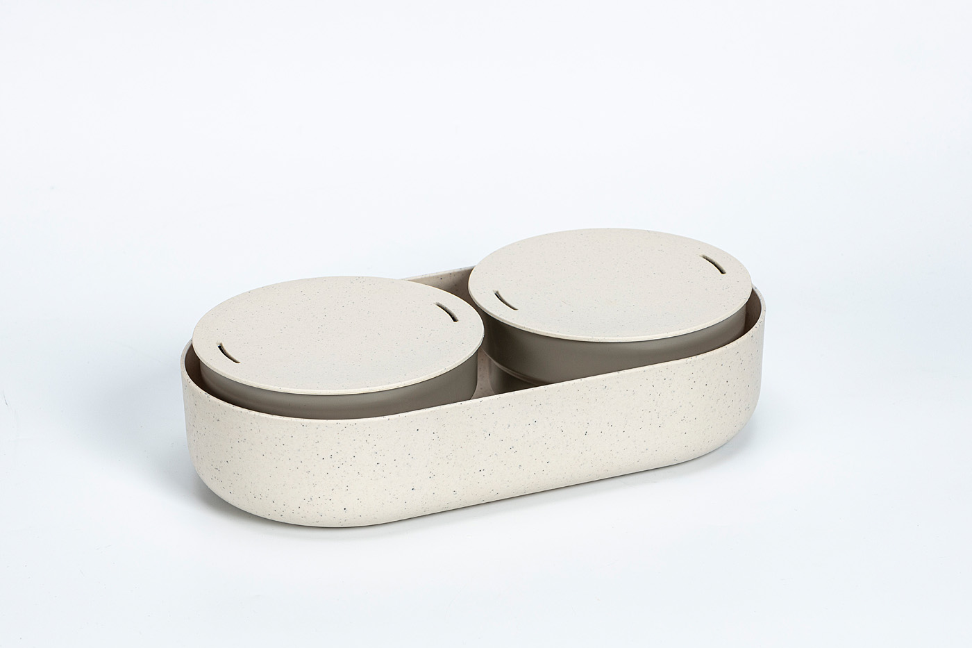 Opakowanie zawiera 2 pokrywki, 2 płytkie sitka, 2 głębokie sitka, 5 zmiennych żeber i podstawkę pod roślinę. Zawiera również perlan i żel do uprawiania roślin. Produkt wykonany jest z materiału bez BPA z domieszką fusów z kawy (5%), która powoduje optyczną ziarnistość i delikatne przebarwienia. Nadaje się do uprawy nasion, tj. rukoli, rzodkiewki, kapusty, brokułów, kalarepy, GORCZYCY (niektóre nasiona należy namoczyć przed rozpoczęciem uprawy - najlepiej przestrzegać informacji na opakowaniu używanych nasion).